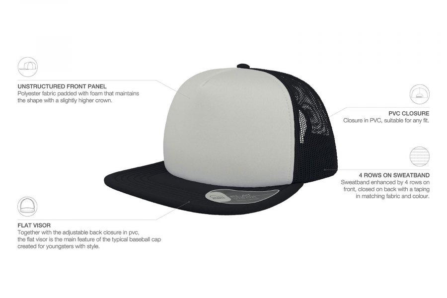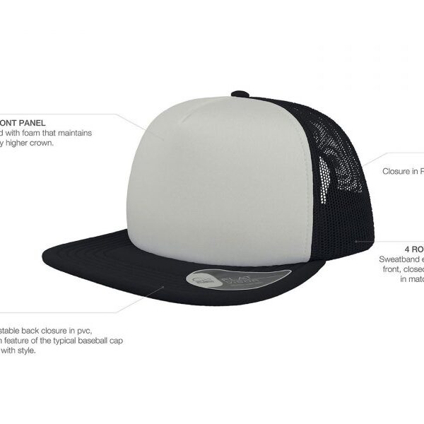5 панелна капа – состав 100% полиестер, заден панел од мрежа, со пвц затворач