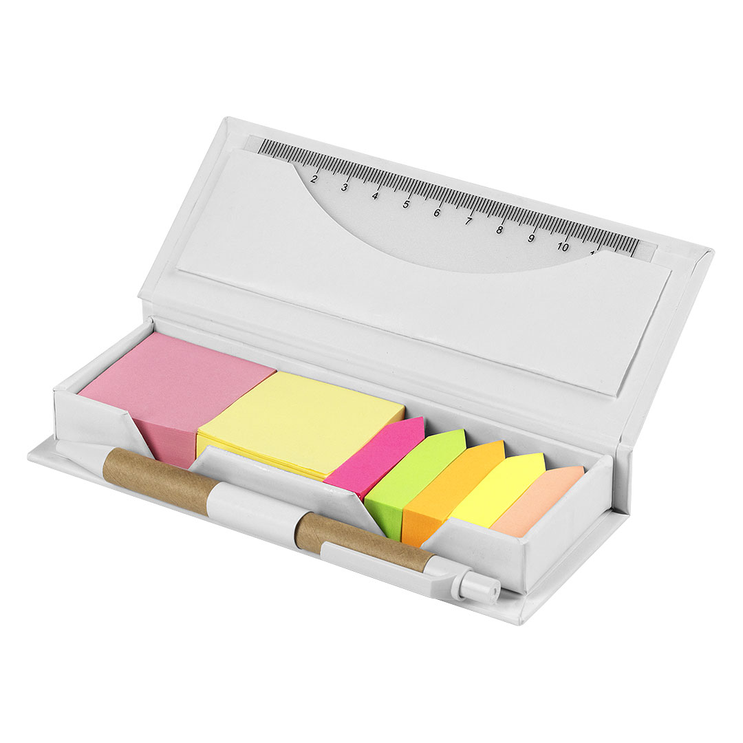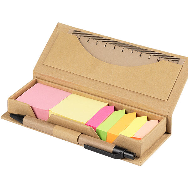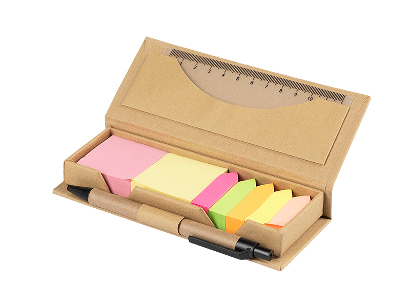 Биоразградлив сет со обележувачи, хартија за белешки, PVC ленир и хартиено пенкало, димензии 15.7 x 6.6 x 2.4cm
